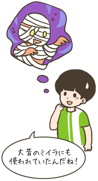 石油の存在は、意外と古くから知られていたようです。世界で最も古く石油が使われたのは、紀元前3000年(今からおよそ5000年前)ごろ。メソポタミア(現在のイラクあたり)では、地面の割れ目からしみ出していた天然アスファルトが、建造物の接着やミイラの防腐、水路の防水などに使われていました。