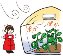 本来は夏の野菜であるきゅうりやピーマンも、今では一年を通して八百屋さんやスーパーで買うことができますね。これは石油のおかげだということを、ご存じでしたか?こうした野菜栽培では、ビニールハウスの中で石油を燃やし、お湯や温風によって暖房し、一年を通じて一定の温度以上を保っているのです。それによって真冬でもビニールハウスの中で夏野菜を育てることができます。 |